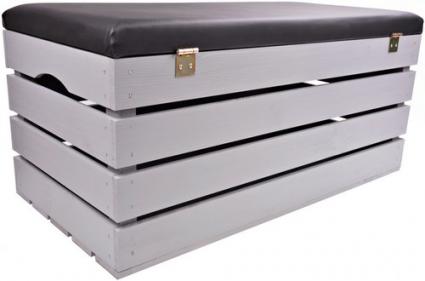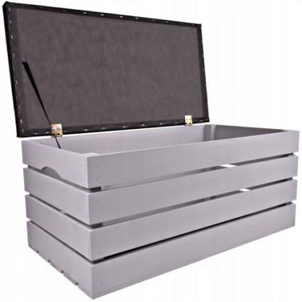 Siedzisko i kuferek w jednym! Skrzynia prezentuje się bardzo okazale. Podnoszony dekielek pozwala na wykorzystywanie jej jako schowek, kuferek na odzież, zabawki czy artykuły domowe.